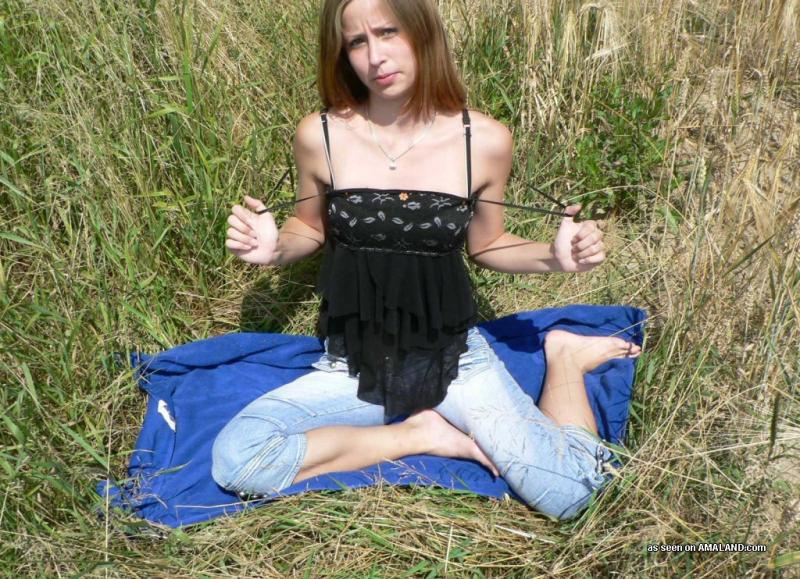 Babe strips naked in the fields